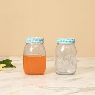 Home Centre Peroni-Cuba Glass Jar-Set of 2 Pieces (500 ml Each) - Transparent