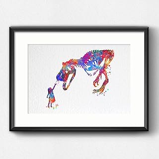 Dignovel Studios フレームなし 13X19 少女とティラノサウルス 恐竜好奇心 勇敢 水彩アート ウェディング 新築祝い 保育園 キッズ ウォールアート ジークレーオフィス ホームインテリア 壁掛け DN545