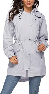 LOMON レディース レインコート 軽量 防水 アウトドア フード付き ロングレインジャケット ウィンドブレーカー