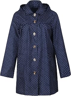 レディース ガールズ ポータブル ファッション ドット フード付き ロング レインジャケット コート レインコート ポンチョ