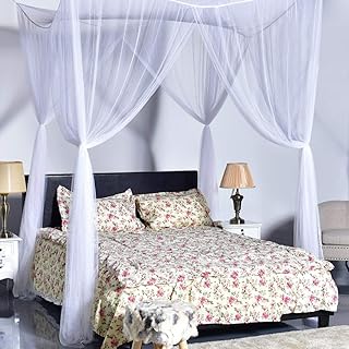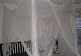 AIFUSI 蚊帳 キングサイズ 四隅 ポストカーテン ベッドキャノピー シングル用 すべてのベビーベッドとベッドにフィット 大人の寝室、子供部屋、ベビーベッド、庭、キャンプ用 (ホワイト)