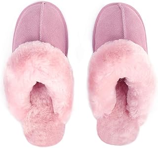CIOR Fantiny レディース 低反発素材 スリッパ フェイクファー裏地 スリッポン クロッグ スカッフ ハウスシューズ インドア&アウトドア US サイズ: 5-6 カラー: パープル