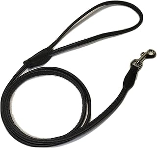 【ZOOleszcz】お洒落にお散歩 ラウンド形状 本革リード 120cm ポーランド製 (超小型犬向け(6mm径, 小型クリップ), ブラック)