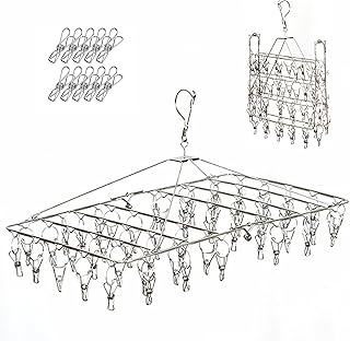 Fayleeko 衣類乾燥ラック クリップ付き 折りたたみ式ステンレススチール乾燥ハンガー 赤ちゃん用ハンガー 靴下乾燥タオル おむつ ブラ 赤ちゃん服 下着の乾燥に 52clips シルバー