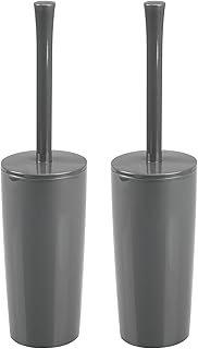 mDesign スリムコンパクトプラスチックトイレボウルブラシとホルダー バスルームストレージ用 – 丈夫で深いクリーニング – 2パック – チャコールグレー