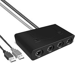 SooPii gcコントローラー接続タップ ニンテンドースイッチ ゲームキューブ コントローラ 接続タップ TURBO連発機能対応 HOMEボタンアリ 大乱闘スマッシュブラザーズ対応 switch OLED/Switch/WiiU/PC用 switch ngc用 転換アタプター 4ポート 最大8人同時にプレイ 3IN1 (ブラック)